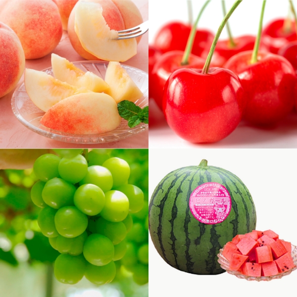 「あら川の桃」(JAわかやま)や、さくらんぼ「紅秀峰」(JA全農山形)にシャインマスカット(JA全農ふくれん)、小玉すいか「ピノ・ガール」(JA全農ながさき)など、市場の目利きが選び抜いた旬のフルーツが勢ぞろい!