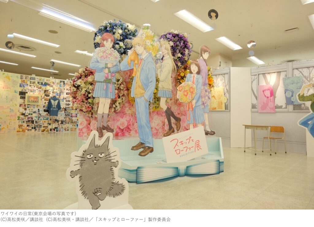 アニメの設定資料、美術資料など、作品の制作過程も展示・紹介。キャラクターと撮影できるフォトスポットに加え、作品に登場した印象的なアイテムの再現展示も! さらに、本展覧会でしか見られない「ニコニコのおまけシアター」では、単行本おまけ漫画の「ボイスコミック映像」を特別上映。笑って、悩んで、少し大人になる。そんな“スキップとローファー”らしい青春の瞬間を体験しよう。