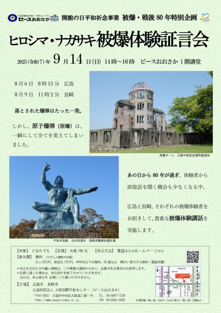 問合せ先: 06-6947-7208(ピースおおさか)