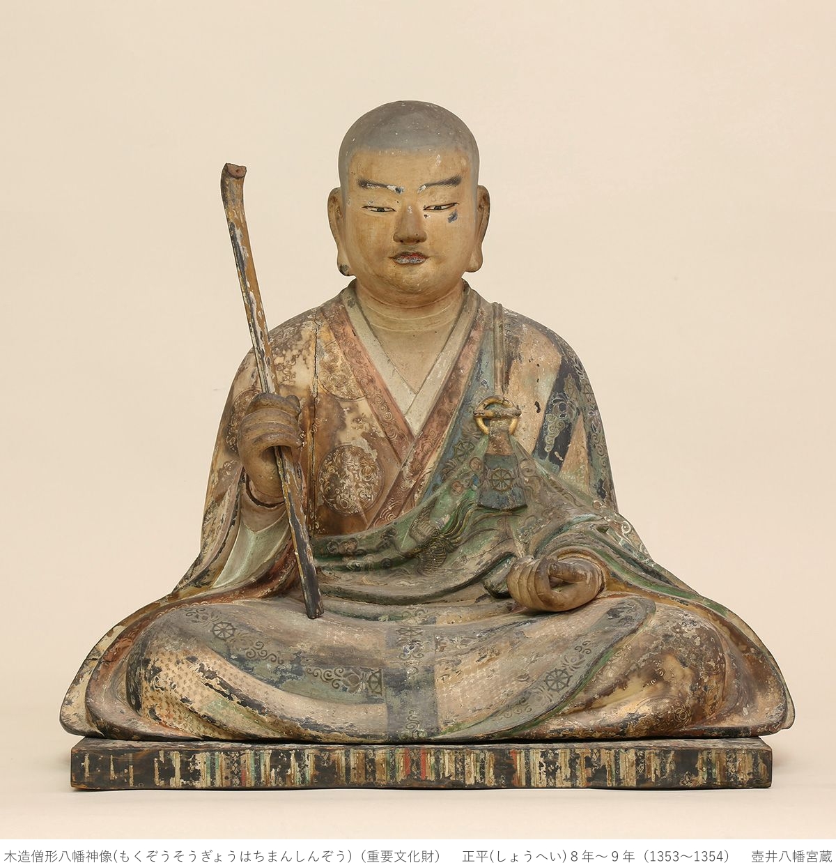 本展では、「木造僧形八幡神及諸神坐像」「黒韋威胴丸(壺袖付)」(いずれも重要文化財)、「太刀 銘安綱(号 天光丸)」(重要美術品)をはじめとする壺井八幡宮の社宝と、河内源氏に関する館蔵資料等をあわせて展示し、「武士の世」の礎を築いた河内源氏の活躍と伝承、そしてその源流が大阪にあったことを紹介する。