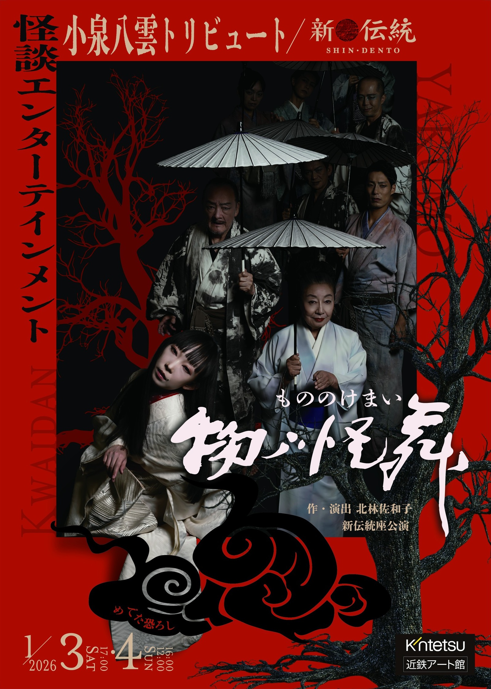 | 新伝統座公演 小泉八雲トリビュート 怪談エンターテインメント 物ノ怪舞(もののけまい) 新伝統座公演 小泉八雲トリビュート 怪談エンターテインメント 物ノ怪舞(もののけまい) 1月 3 – 1月 4 終日 ![]() 脚本・演出家 北林佐和子の提唱する「新伝統」を実践すべく、日本の伝統芸能と異ジャンルのエンターテインメントを融合させ新しい舞台芸術を創造するユニット「新伝統座」が贈る、小泉八雲トリビュート 怪談エンターテインメント! それは すぐ隣にある もう1つの世界――。 【演目】 第一部/新伝統カブキ『Lady Lion』 「物ノ怪は舞う 見えざるモノの形を求めて」 女は獅子になる。現代社会で自分が見失った心に獣の魂が牙をむく。これは変身か解放か。歌舞伎「鏡獅子」×カフカ「変身」。 誰も見たことのないLADY LIONがここに生まれる。 【第二部】朗読舞 怪談 「物ノ怪は語る 声なきモノの記憶を宿して」 小泉八雲が蒐集した日本の物ノ怪たち。そして、あなたのすぐ隣で生まれる「都市伝説」。時を超えて紡がれる怪異を鮮烈な「舞」と「朗読」で体験する新感覚エンターテインメント。 【作・演出】 北林佐和子 【出演】 (新伝統座)伊瑳谷門取 實川ふう (特別ゲスト)三林京子 音ノ羽 梅園紗千 植村好宏 桂團治郎 オオサワシンヤ 【ヤロウカブキ】 小久保びん 山本直匡 小山祐美 浦川舞奈 しばけん 美姫光 楠川絢子 村上森子 二ノ丸奈央 【アンサンブル】 まきしむ 新貝武彦 林知可 北條倫子 森茂昭 布施敬子 原田岬枝 木寺広美 星谷昌香 安部翔子 月之香玲衣 花香まち 氣居直生 HiNeCo 熊野千明希 ちいこいち へんみさち くぬぎ森子 小池博人 粂川恵美子 小林優子 森由 壱 木守智子 開催期間: 2026/1/3(土)・4(日) 開催時間: 3(土)17:00 4(日)12:00/16:00 開催場所:[...] | ||||||