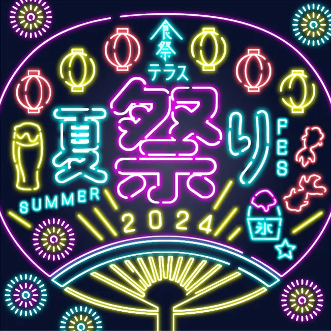 今年も、食祭テラスに夏祭りがやって来る♪ネオンや提灯で“ニュートロ(新しい懐かしさ)”を表現した会場には、踊る・食べる・遊ぶといった楽しみがたくさん!