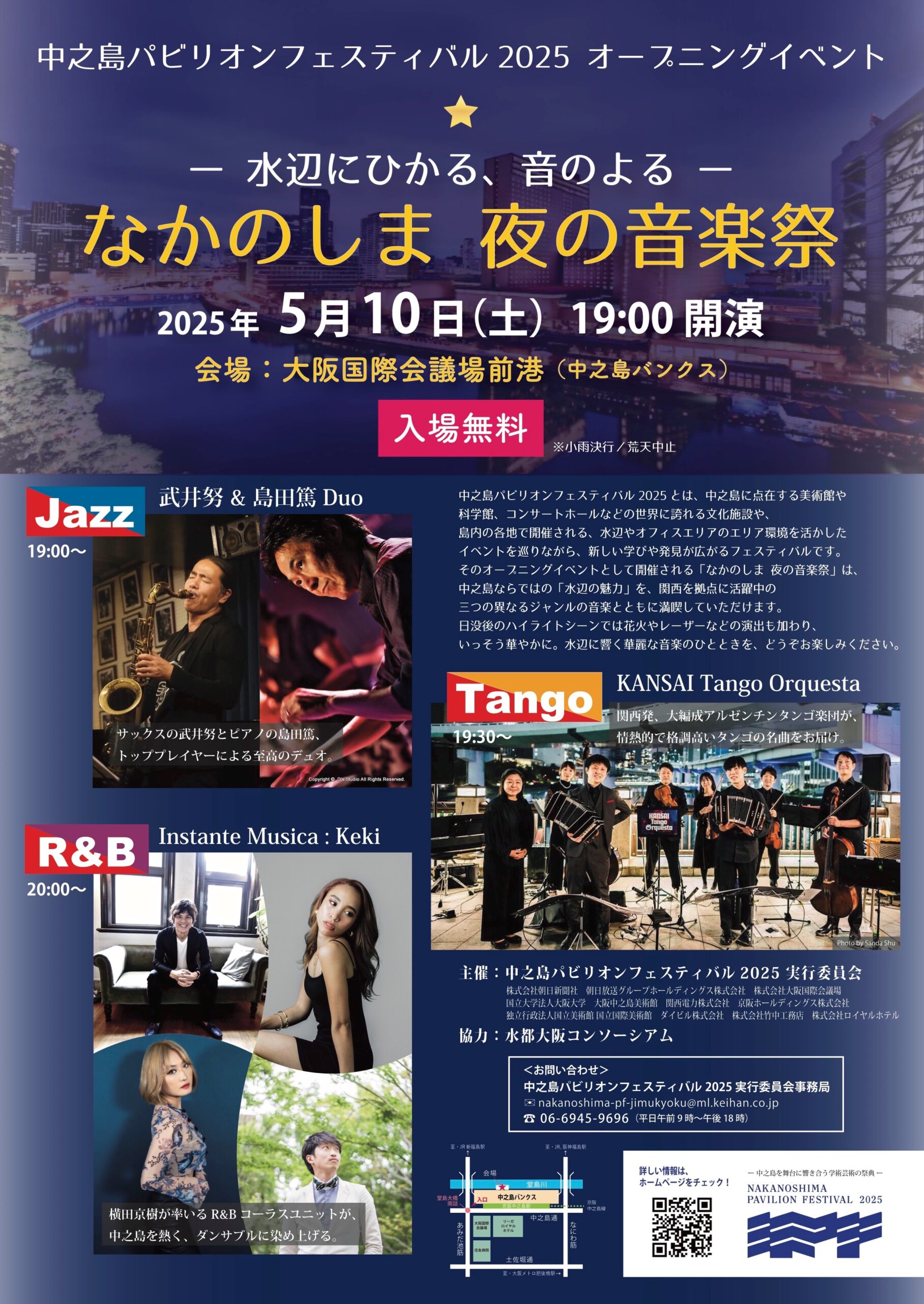 5/10(土) 中之島パビリオンフェスティバル2025 オープニングイベント 「ー水辺にひかる、音のよるー なかのしま 夜の音楽祭」