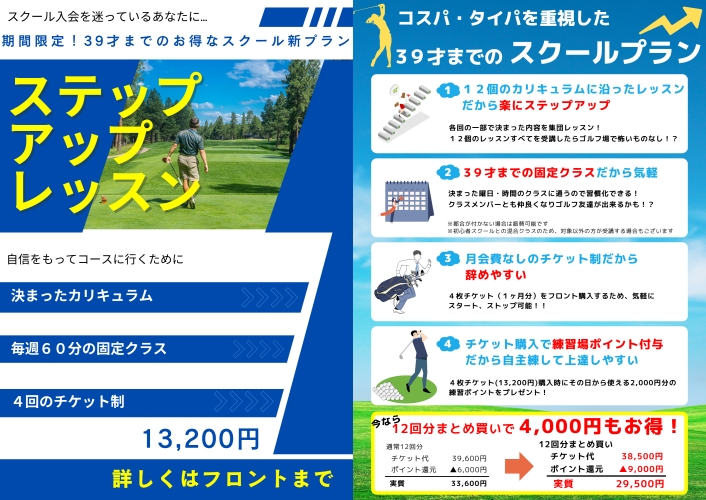 アクセス抜群のゴルフ練習場「桜宮ゴルフクラブ」では、初心者・経験者を問わず、個人に合わせた指導を受けられるゴルフスクールが大人気です。なかでもコスパ・タイパを重視した、39才までの方にお得なスクールプランが新登場!