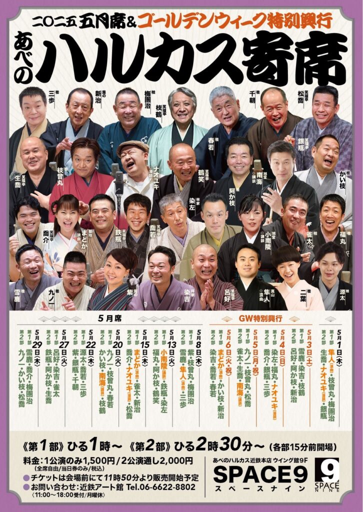 あべのハルカスにて週2回、毎日6人の出演者によって開催される「あべのハルカス寄席」。チケットは当日券のみ。“喜楽に落語”のコンセプトのもと、ふらりと気軽に立ち寄って、生のお囃子の入った本格的な寄席芸を楽しむことができる。