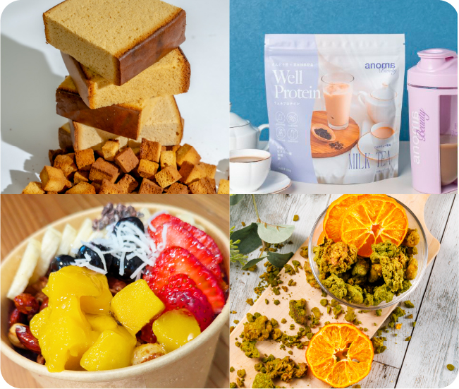 600種類以上のプロテインを試し、プロテインマイスター®の資格を持つプロテインひろこさん監修のプロテイン「JIMOTEIN(ジモテイン)」や、プロテインを使用した菓子、パンなど、選りすぐりのウエルネスフードが集合!