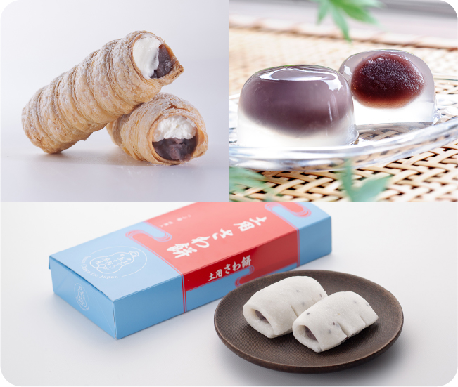 人気スイーツを出来たてでお届けする「あずきコルネ&レモンコルネ」や、丹念につき込んだ胡麻入りの餅で、北海道産小豆の粒餡を包んだ郷土菓子「土用さわ餅」、暑い季節にぴったりの味わい「水まんじゅう」や「赤福水ようかん〈夏季限定〉」など、懐かしさと新しさ、その両方を感じられるスイーツが揃う。