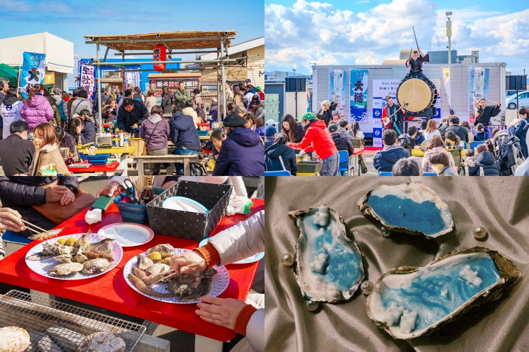 また、マンスリーコンテンツとして、泉南市出身の才能あふれる和太鼓奏者や大道芸人たちが集結する牡蠣まつりスペシャルステージショーも開催。そのほか、ステージショーや、地酒飲み比べ、「オリジナル牡蠣殻キャンドル」作りワークショップ、ガラガラ抽選会など、お楽しみ盛りだくさんでお届け。